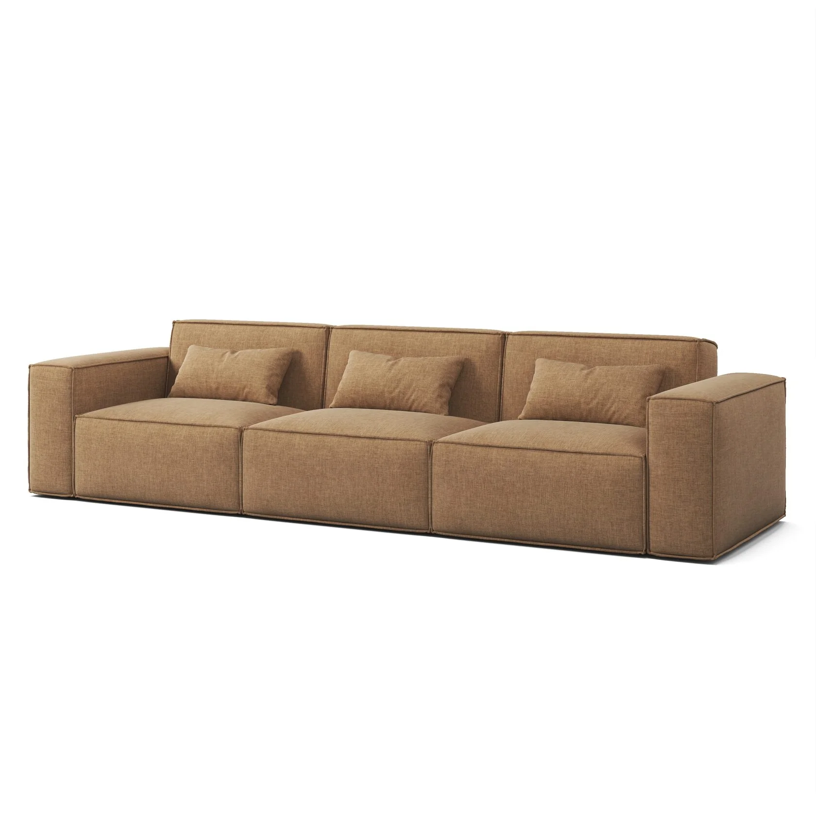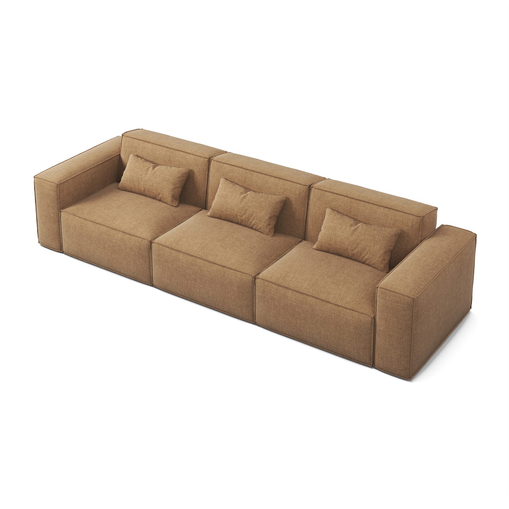 У модели исключительно прочный каркас из многослойной экологичной березы и массива древесины. Такая конструкция обеспечивает устойчивость к механическим нагрузкам и долгий срок службы, исключает скрипы и деформации даже при интенсивном использовании на протяжении нескольких лет. А главное, диван подходит для пространства любой площади, ведь изготавливается по индивидуальным размерам. Доступен формфактор 280 см (20-80-80-80-20) и любые другие варианты.