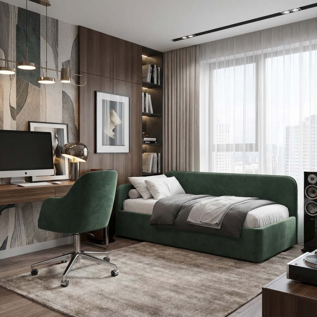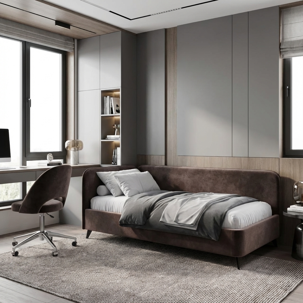 - Ортопедическое основание класса LUX с подпружиненными ламелями – ключевое преимущество, редкое для односпальных моделей на рынке.