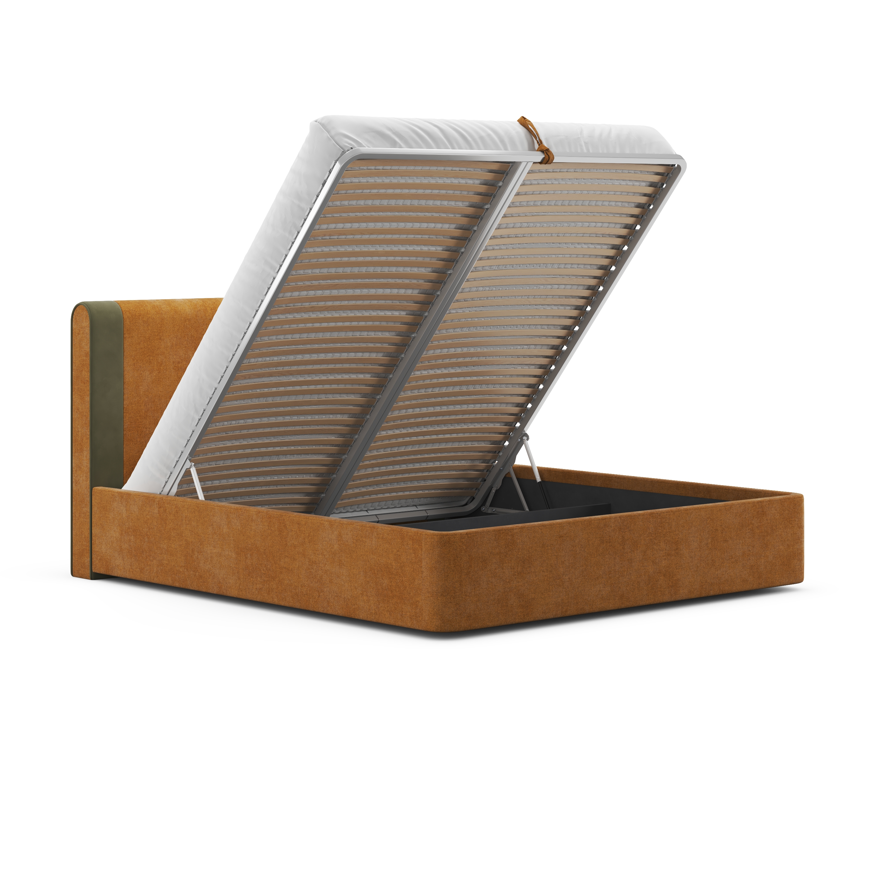 Но главной изюминкой является подъемный механизм, открывающий доступ к вместительному отделению для хранения вещей (оно есть даже в варианте на ножках!). Теперь вы можете рационально использовать пространство спальни и упорядоченно хранить постельное белье и сезонные вещи. Турецкие премиальные амортизаторы подъема обеспечивают плавное и бесшумное открывание и позволяют фиксировать положение в любой точке хода.