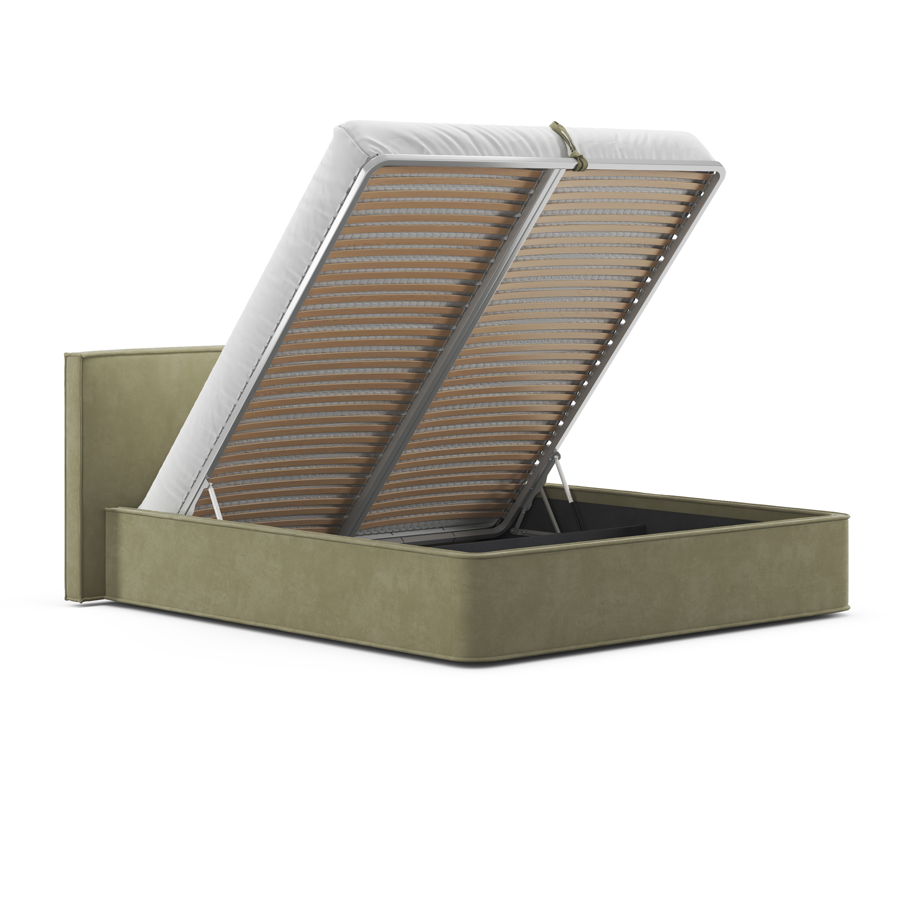 Но главной изюминкой является подъемный механизм, открывающий доступ к вместительному отделению для хранения вещей (оно есть даже в варианте на ножках!). Теперь вы можете рационально использовать пространство спальни и упорядоченно хранить постельное белье и сезонные вещи. Турецкие премиальные амортизаторы подъема обеспечивают плавное и бесшумное открывание и позволяют фиксировать положение в любой точке хода.